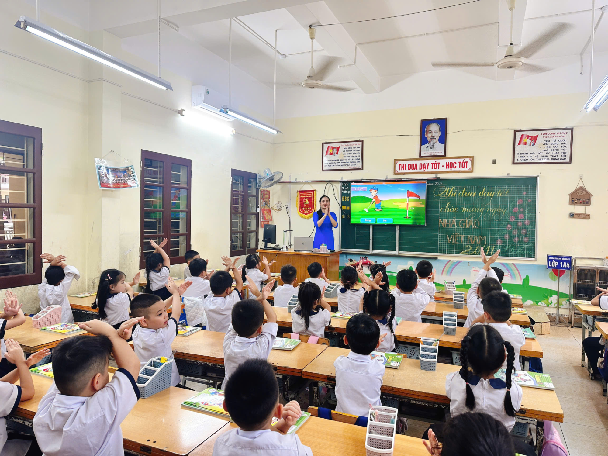 Tiết học diễn ra nhẹ nhàng, cuốn hút. Đặc biệt, cô Nhị đã khéo léo sử dụng trò chơi ngôn ngữ hình thể để giúp học sinh hứng thú và hiểu bài sâu sắc hơn. Dưới sự dẫn dắt của cô, các em phát huy tính tích cực, chủ động trong học tập và khắc sâu kiến thức. Các em còn biết vận dụng kiến thức để nêu tình huống liên quan đến thực tế cuộc sống, tạo nên sự gắn kết giữa bài học và ứng dụng. Xin chúc mừng cô giáo Nguyễn Thị Nhị cùng tổ chuyên môn khối 1 Trường Tiểu học Đông Hải 1 đã có tiết học vui vẻ và hiệu quả!