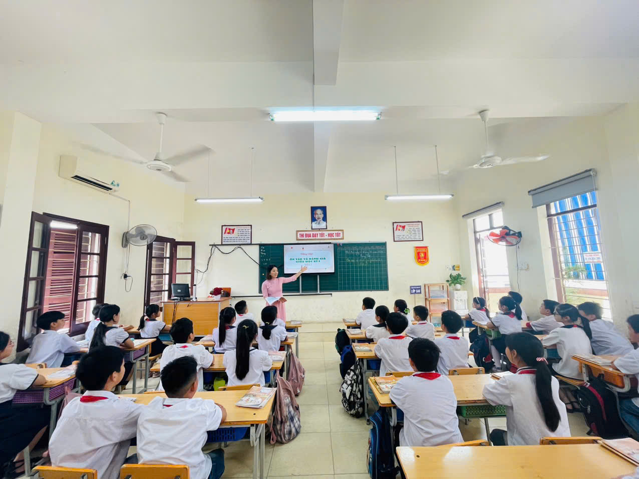 Cô và trò đều tích cực thi đua, cô dạy tốt- trò học ngoan. Chúc mừng các cô giáo của Khối 5 đã hoàn thành tiết dạy của mình.