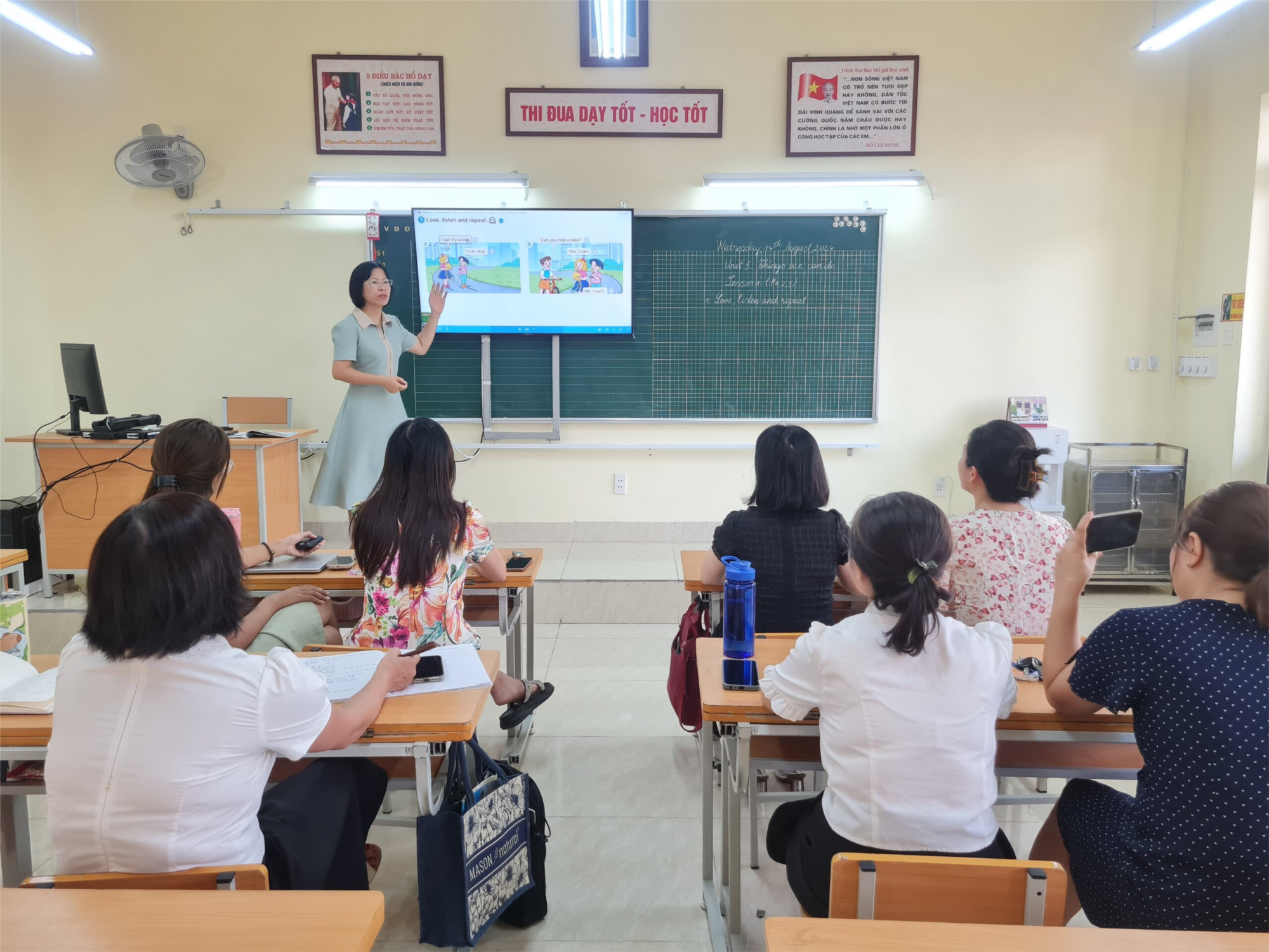 Trong tiết học, học sinh được tham gia các hoạt động hỏi-đáp, tương tác, phát triển tốt 4 kỹ năng nghe, nói, đọc, viết. Đặc biệt chú trọng việc dạy và sửa lỗi phát âm cho học sinh trong quá trình thực hành kỹ năng nghe-nói. Tiết học diễn ra sôi nổi, hào hứng, học sinh học tập vui vẻ, tích cực, và chủ động lĩnh hội kiến thức.