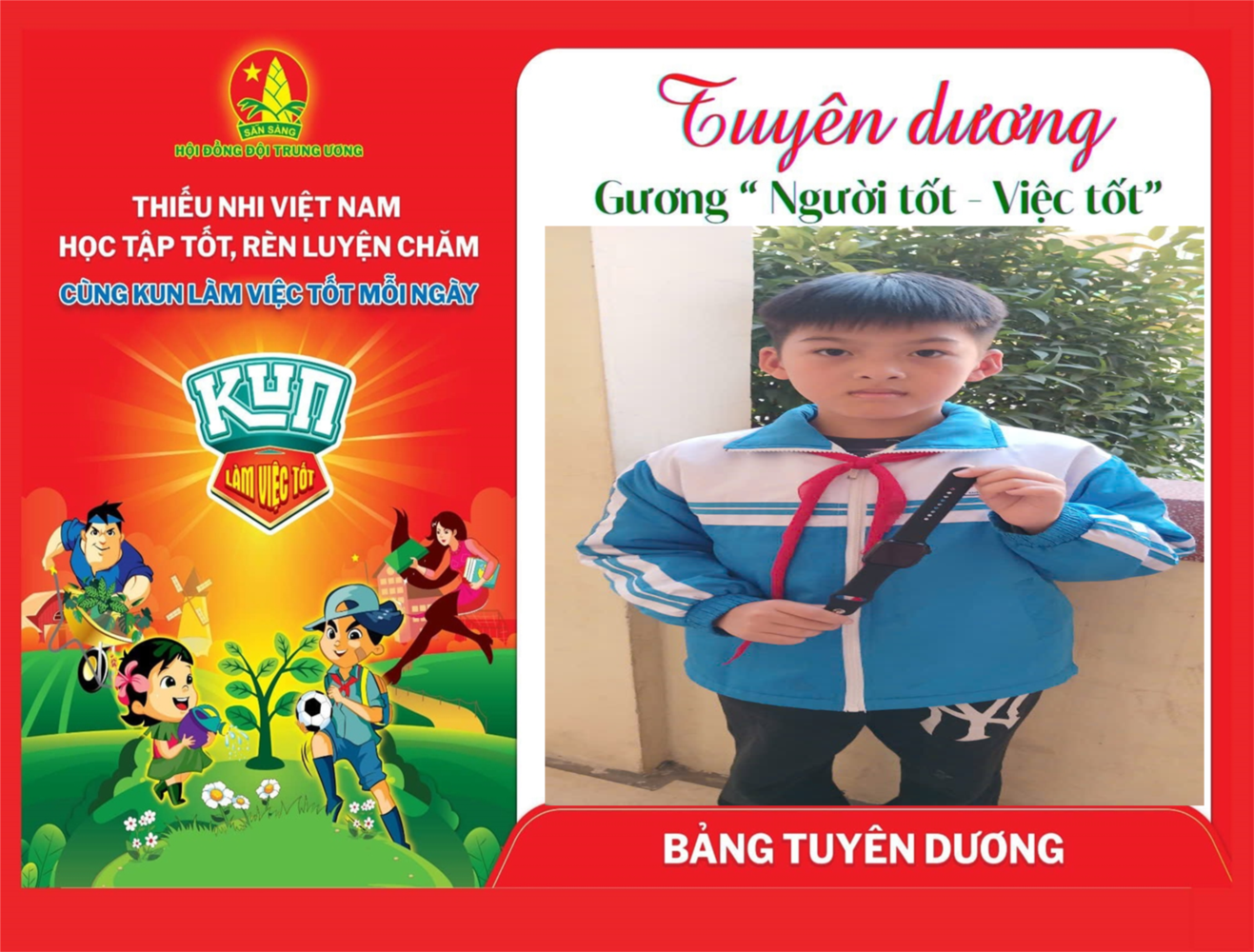 Trong tuần này Liên đội biểu dương em Phạm Bảo Nam - Chi đội 5A6 đã nhặt được nhặt đồng hồ và trả lại cho bạn. Việc làm tuy nhỏ nhưng ý nghĩa lớn đã giúp các em bồi dưỡng, nâng cao ý thức, hình thành thói quen làm việc tốt từ đó trở thành nét đẹp, hành động tích cực hằng ngày, ở mọi lúc, mọi nơi đối với mỗi đội viên, thiếu nhi trong toàn Liên đội.