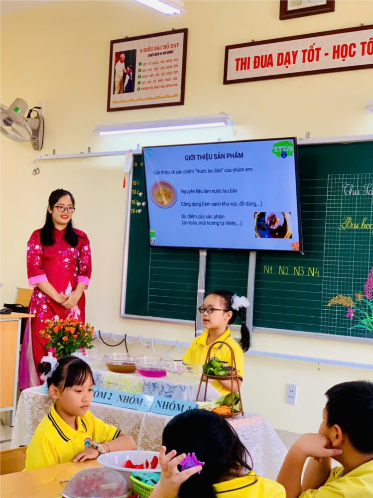 Thực hiện kế hoạch chuyên môn của nhà trường, sáng ngày 4/10/2024 tổ chuyên môn khối 2 đã lên lớp chuyên đề cấp trường: Chuyên đề: “Dạy học STEM môn Tự nhiên xã hội lớp 2” - bài học minh họa: Giữ gìn vệ sinh nhà ở (Tiết 2). Phần lên lớp minh họa do cô giáo Nguyễn Thị Hải Vân và các em học sinh lớp 2A8 thể hiện. Trong tiết học, giáo viên đã linh hoạt sử dụng các phương pháp dạy học và các hình thức tổ chức lớp học hiệu quả. Học sinh hào hứng, tích cực tham gia vào việc “chế tạo” nước lau bàn bằng những vật liệu tự nhiên cũng như các hoạt động học tập khác. Sau tiết dạy, Ban giám hiệu cùng các đồng chí giáo viên trong hội đồng sư phạm nhà trường đã cùng thảo luận, phân tích bài học để hoàn thiện chuyên đề.