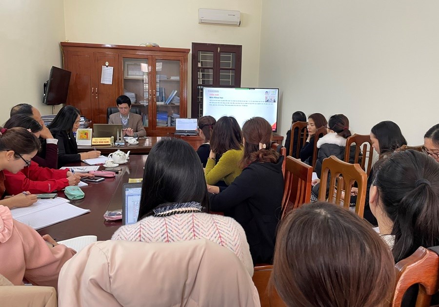+ Ngày 14/02/2023: Hội thảo trực tuyến giới thiệu các bộ sách: Bộ sách Kết nối tri thức với cuộc sống của NXBGD Việt Nam; SGK Toán 4 của NXB Đại học Vinh; Bộ sách Cánh Diều của NXB Đại học sư phạm; SGK Tin học 4 của NXB Đại học Vinh. Dự tại điểm cầu nhà trường: Các đồng chí BGH, khối trưởng các khối chuyên môn và các giáo viên được phân công nghiên cứu, lựa chọn SGK lớp 4 của nhà trường.