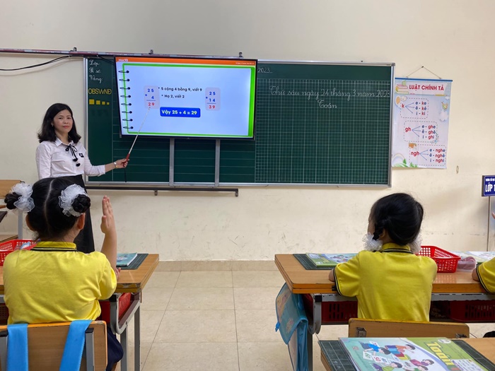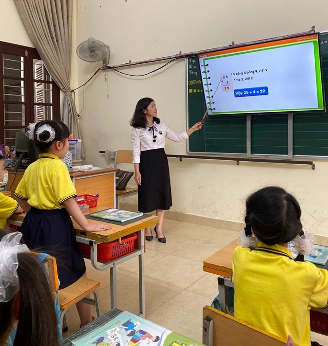 Phần lên lớp minh họa do cô giáo Mạc Thị Phương Mai và HS lớp 1A1 thể hiện qua tiết Toán: Phép cộng dạng 25 + 4, 25 + 40.