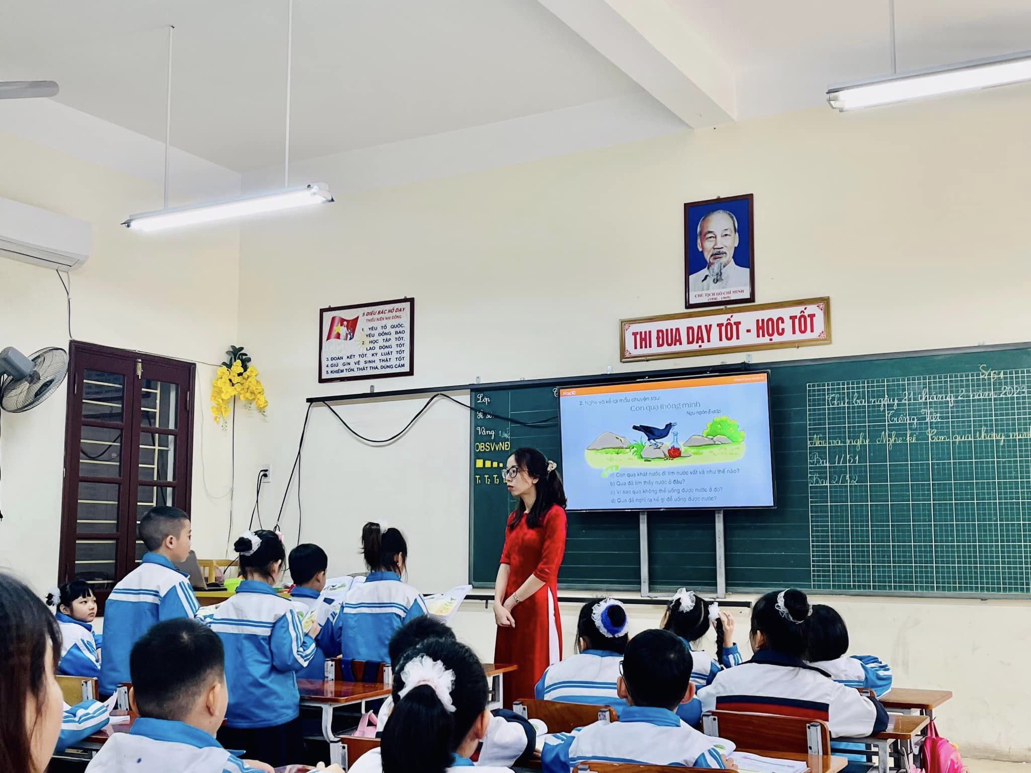 Phần lên lớp minh họa do cô giáo Cao Thị Thường và các em học sinh lớp 2A3 thể hiện qua tiết học: Nói và nghe: Bài học: Con quạ thông minh