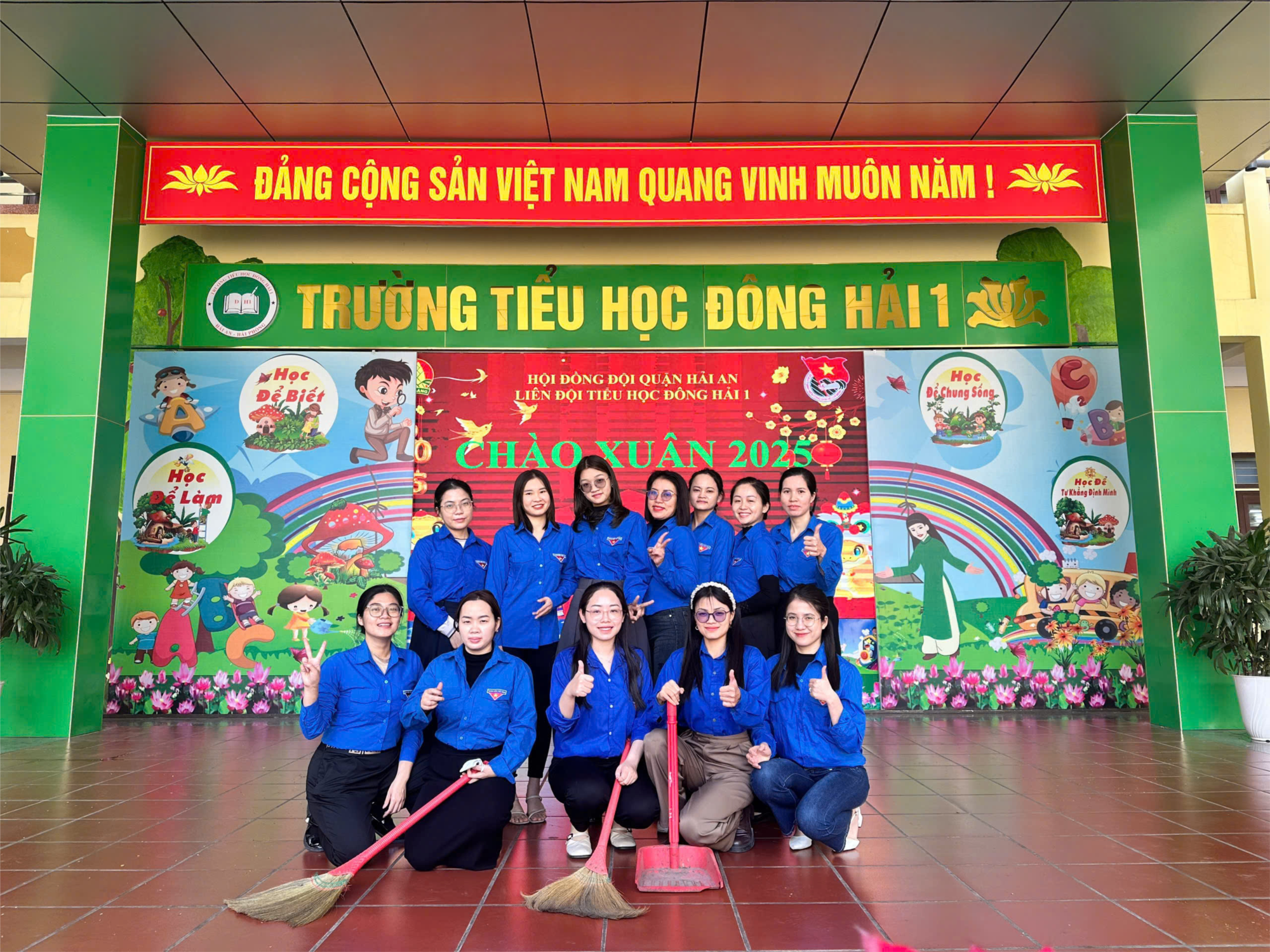 Sáng ngày 19/01/2025, chi đoàn giáo viên trường tiểu học Đông Hải 1 đã tổ chức ra quân hưởng ứng Ngày Chủ nhật xanh nhân dịp Tết nguyên đán Ất Tỵ năm 2025 gắn với các hoạt động dọn dẹp, vệ sinh trường lớp đón Tết an toàn, sạch sẽ.