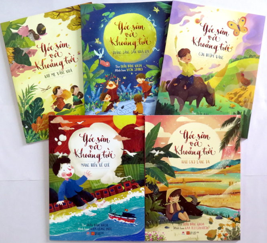 Đó là con bướm vàng, cái sân, dòng sông Kinh Thầy, con chim, con gà, vườn cải, cây đa, con trâu, cây trầu... và nhất là ánh trăng của làng quê. Với tuổi thơ trong Góc sân và Khoảng trời của Trần Đăng Khoa, ông trăng cũng ngây thơ như trẻ con, cũng thích khoe khuôn mặt tròn, cũng nhoẻn miệng cười thích thú khi nhìn thấy chuối, thấy xôi; và thú vị nhất là cũng biết thập thò ngoài cửa khi rủ bạn đi chơi.