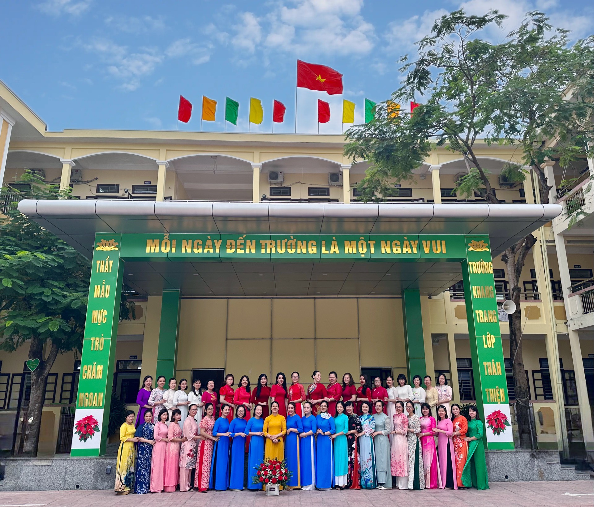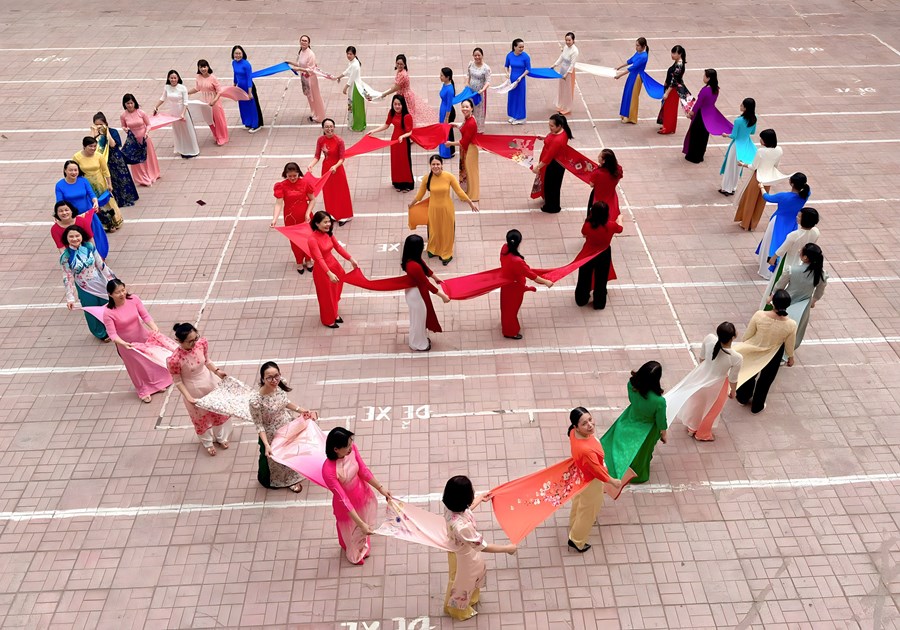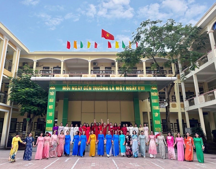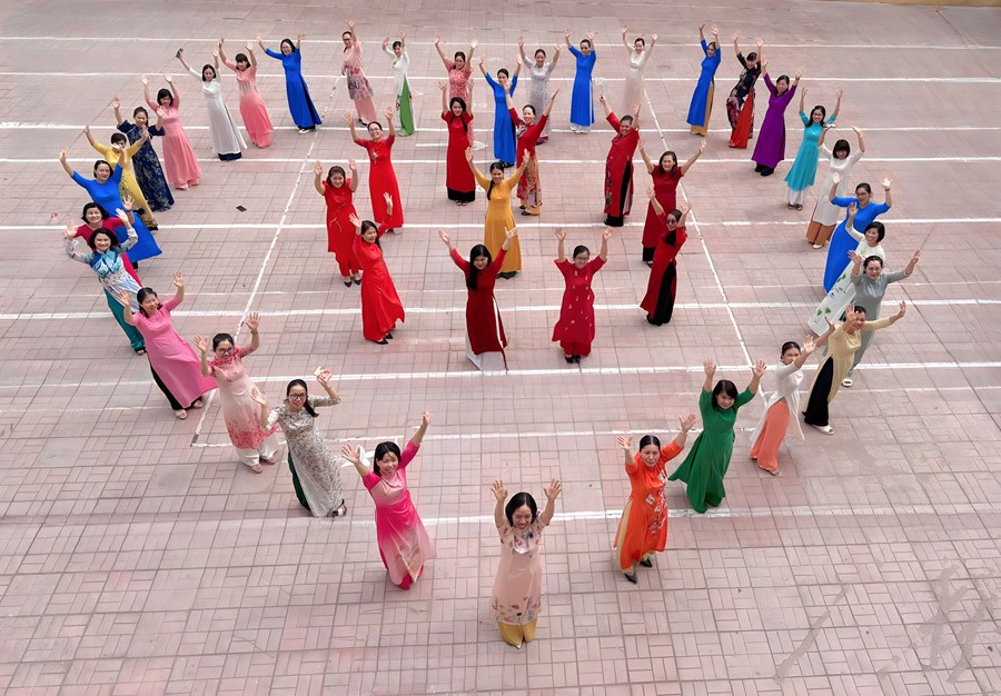 🌻Tập thể nữ cán bộ - giáo viên nhà trường cùng nhau mặc những chiếc áo dài xinh xắn, rực rỡ, thướt tha đến trường. Qua hoạt động này vừa góp phần tôn vinh vẻ đẹp truyền thống của người phụ nữ Việt Nam, thể hiện lòng yêu nghề, mến trẻ của các cô giáo, vừa giáo dục cho học sinh lòng tôn quý cái đẹp và ý thức giữ gìn, phát huy nét đẹp văn hóa bản sắc, truyền thống của dân tộc.