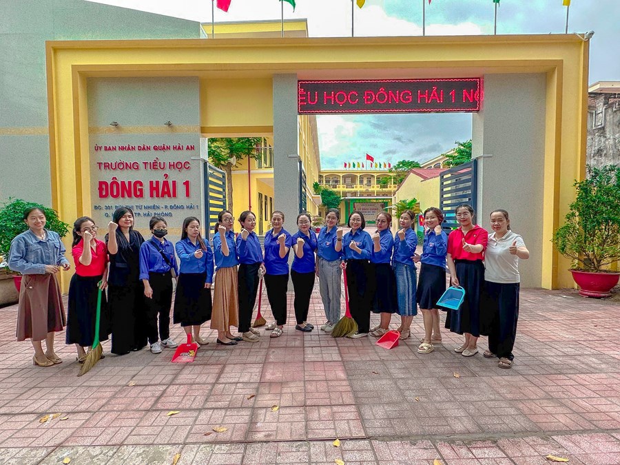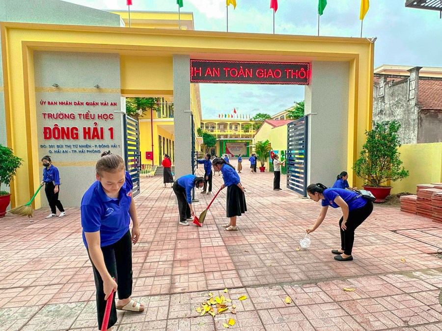 Các đoàn viên Trường tiểu học Đông Hải 1 tham gia chiến dịch “Chủ nhật xanh” đã tập trung dọn dẹp, thu gom rác khu vực sân chính và khu vực xung quanh trường, cắt tỉa cây xanh.Tuy trường học vẫn đang trong quá trình hoàn thiện sau xây dựng, có nhiều bui bặm nhưng thanh niên trường Tiểu học Đông Hải 1 không ngại khó khăn, cố gắng dọn dẹp sạch sẽ mọi khu vực cũng như cảnh quan của trường.