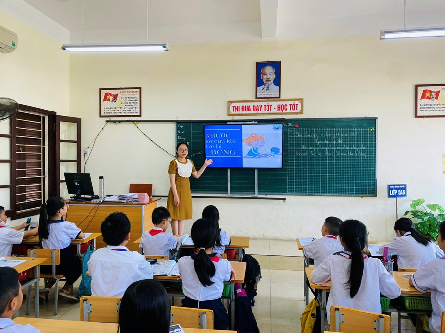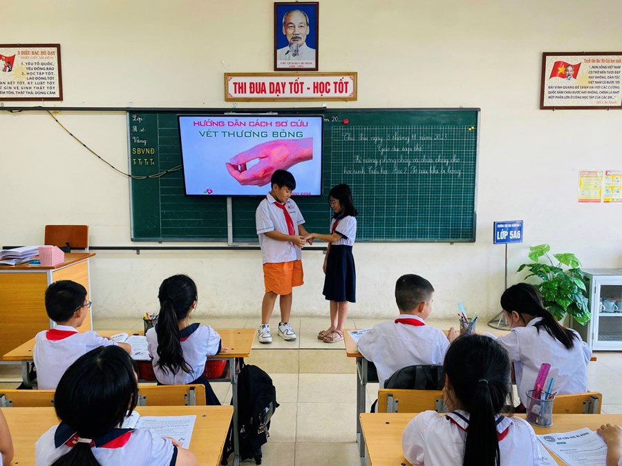 . Trong tiết dạy, giáo viên đã vận dụng linh hoạt các phương pháp và hình thức kĩ thuật dạy học tích cực trong các hoạt động giúp học sinh nắm được nội dung bài rất tốt. Các em đã phân biệt được các mức độ bỏng do lửa, do nhiệt và bước đầu có kĩ năng sơ cứu khi bị bỏng. Dưới đây là một số hình ảnh minh họa: