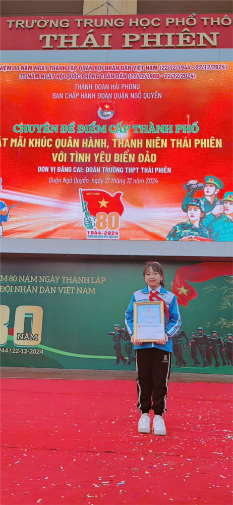 Ngày 21/12/2024, tại Trường THPT Thái Phiên, BCH Đoàn Thành phố Hải Phòng long trọng Tổ chức trao giải cuộc thi: Tìm hiểu truyền thống “80 năm Ngày thành lập Quân đội nhân dân Việt Nam và 35 năm Ngày hội Quốc phòng toàn dân”.