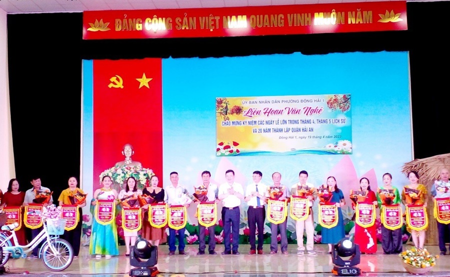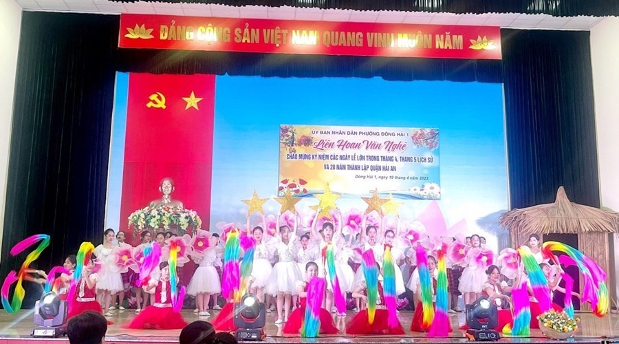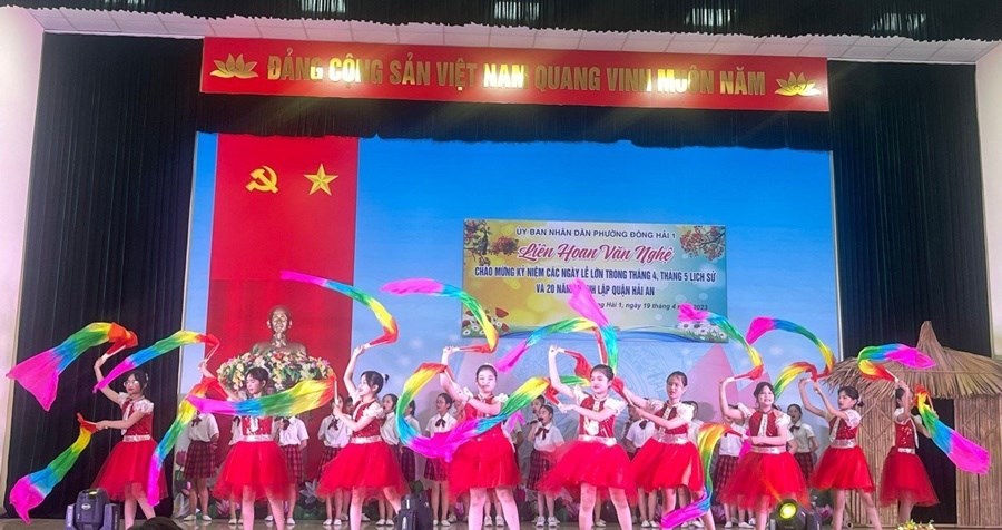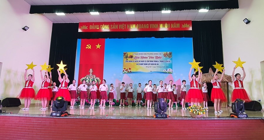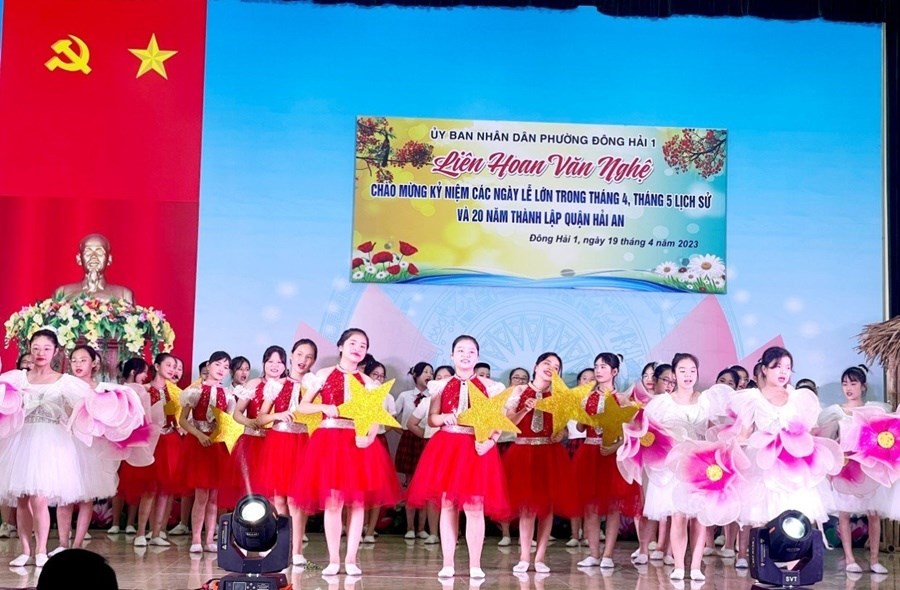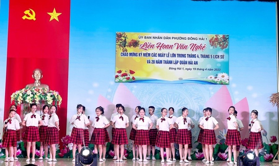 Hội diễn được tổ chức vào 19 giờ ngày 19/4/2023 tại Hội trường đa năng UBND phường, Trường Tiểu học Đông Hải 1 tham gia với tác phẩm “ Bác Hồ người cho em tất cả” do các em học sinh khối 5 biểu diễn. Tiết mục tham dự của trường được đầu tư, chuẩn bị kĩ càng. Từ khâu trang phục, âm nhạc, múa minh họa, kỹ thuật biểu diễn… đều được các thầy cô phụ trách hướng dẫn chuẩn bị chu đáo. Việc tham gia hội diễn đã tạo được niềm vui, sự phấn khởi cho CB-GV-PH-HS của nhà trường hưởng ứng phong trào thi đua chào mừng kỷ niệm các ngày lễ lớn trong tháng 4, tháng 5 lịch sử và kỷ niệm 20 năm ngày thành lập quận Hải An.
