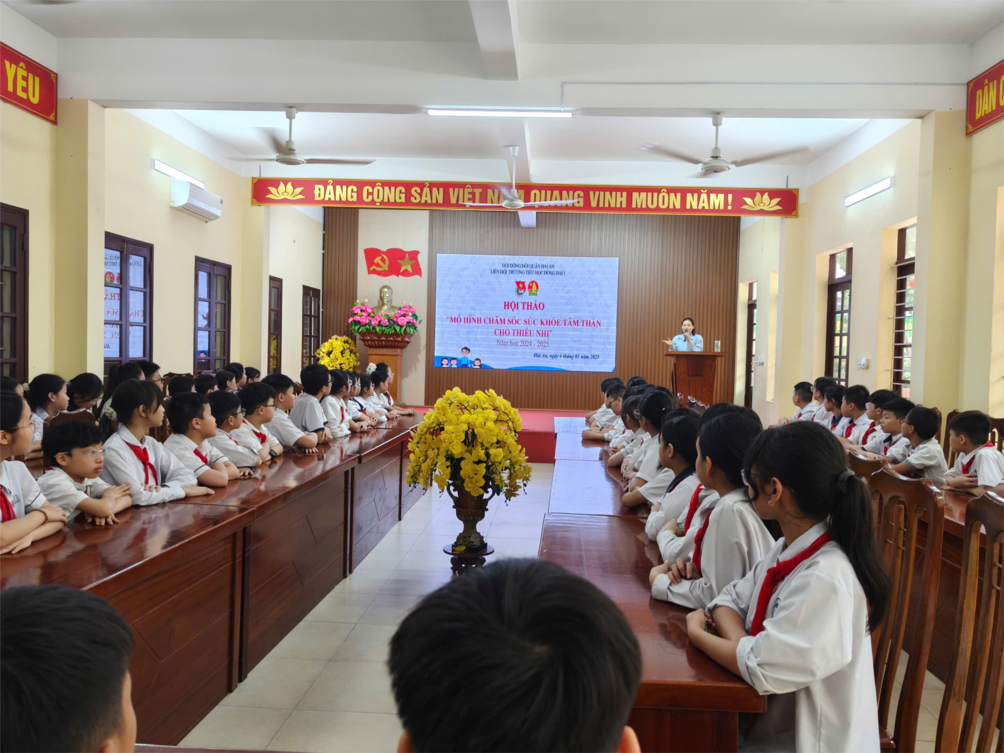 Sáng ngày 6/1/2025 liên đội TH Đông Hải 1 tổ chức ra mắt mô hình: “Chăm sóc sức khỏe tâm thần cho thiếu nhi” . Với mục tiêu trao đổi về vai trò của sức khỏe tâm thần đối với sự phát triển nhân cách của học sinh và chia sẻ những vấn đề liên quan đến tâm lý của học sinh TH.