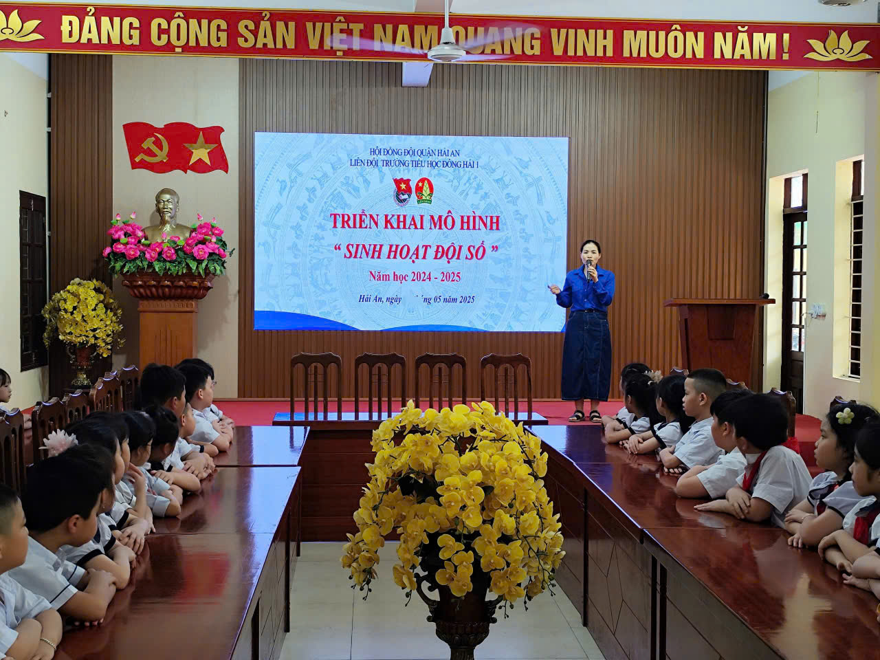 Ngày 09 tháng 05 năm 2025 liên Đội TH Đông Hải 1 tổ chức triển khai mô hình “ Sinh hoạt Đội số” năm 2024 – 2025. Để tham gia trải nghiệm trên nền tảng số mỗi Đội viên sẽ được liên đội đăng ký 1 tài khoản và mật khẩu, các em sẽ sử dụng tài khoản và mật khẩu đăng nhập trên hệ thống Website: https://anschool.vn. Đăng nhập thành công các em sẽ được trải nghiệm nội dung chủ đề trong tháng do HĐĐ Trung ương hướng dẫn, thực hiện bài trắc nghiệm kiến thức, lập kế hoạch cá nhân. Đồng thời mỗi chi đội sẽ trải nghiệm với hình thức sinh hoạt chi đội trên nền tảng số.