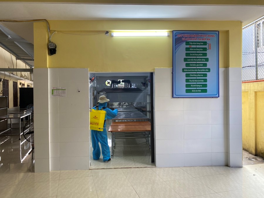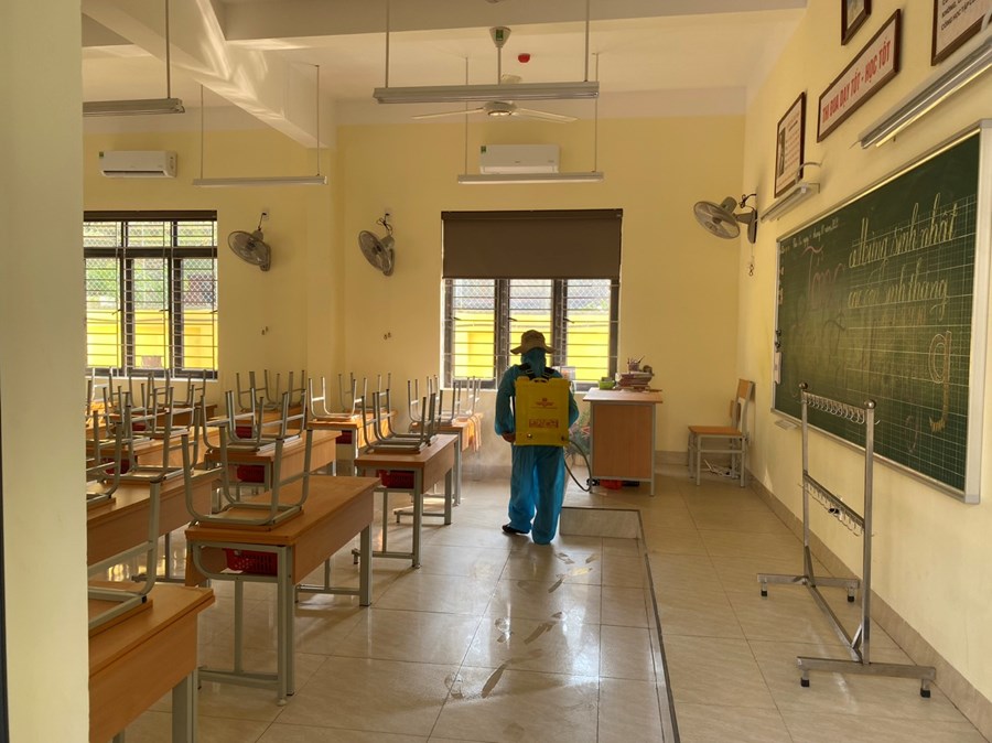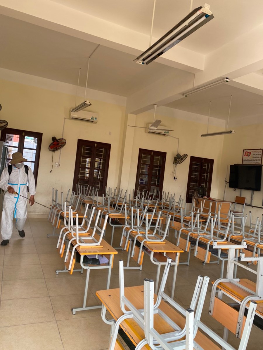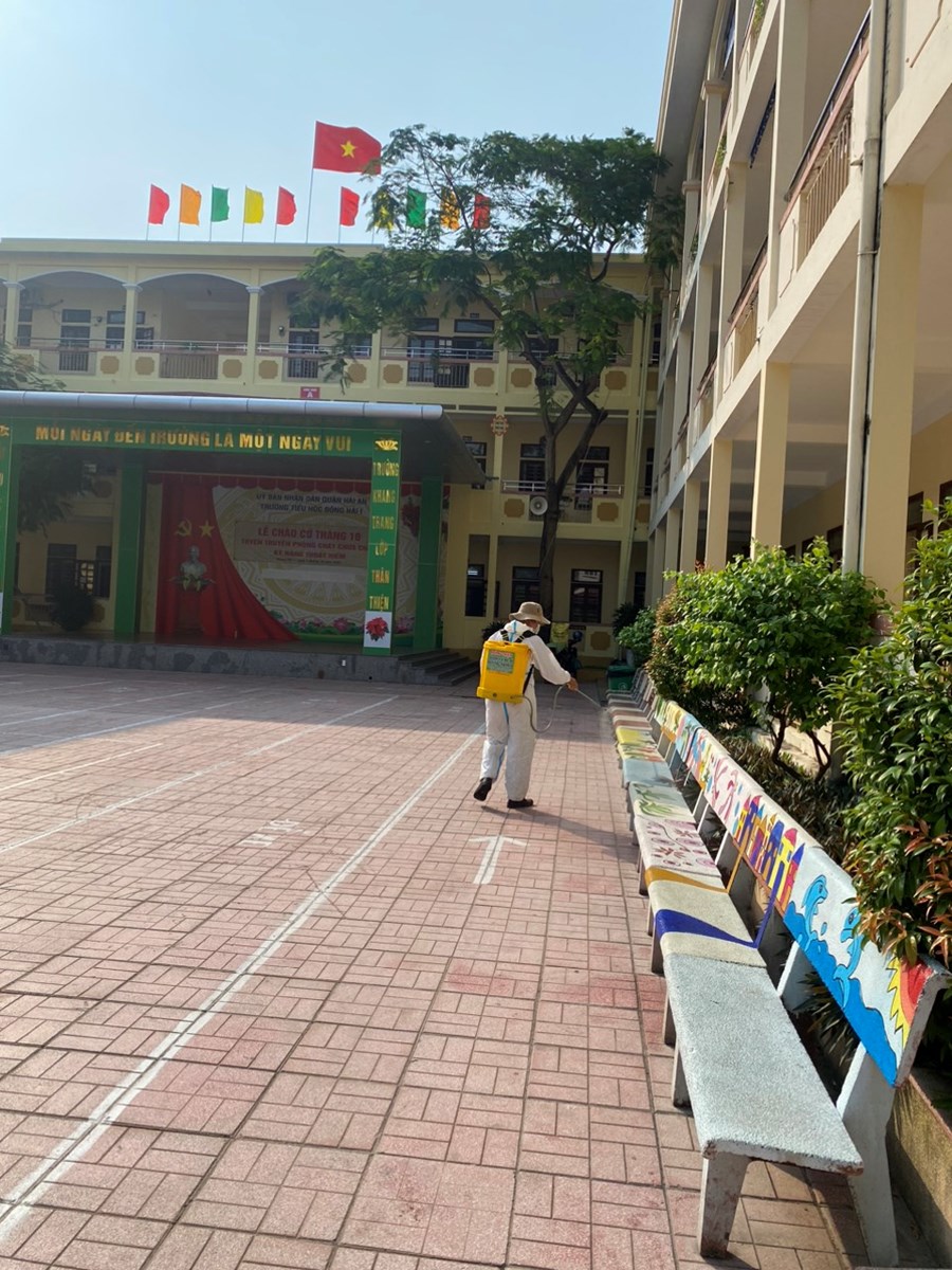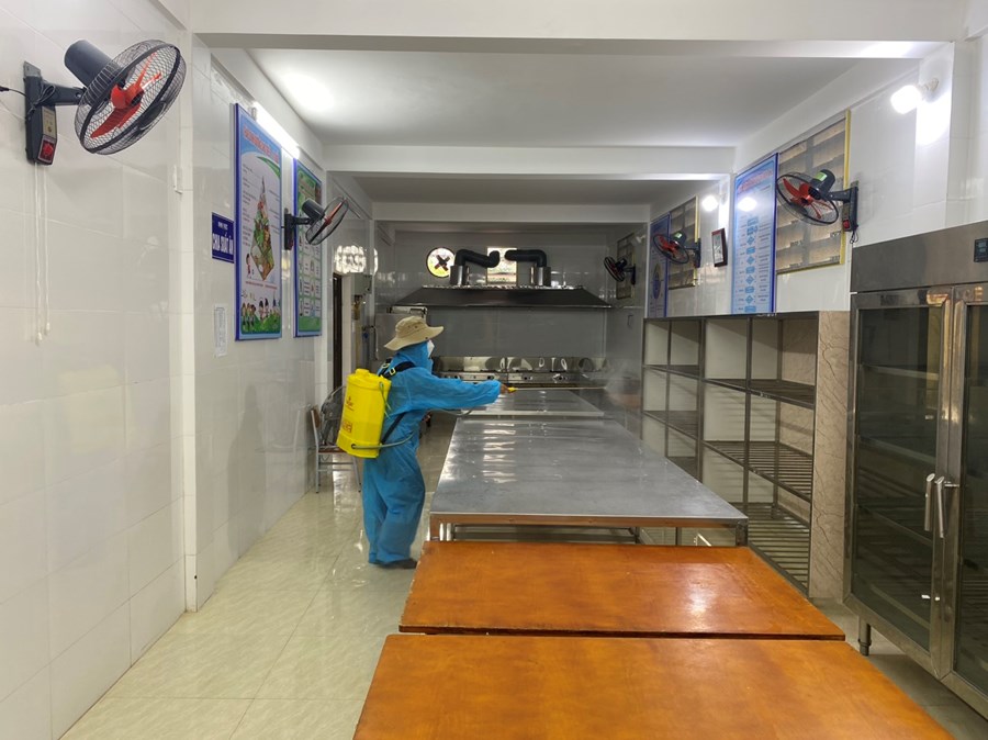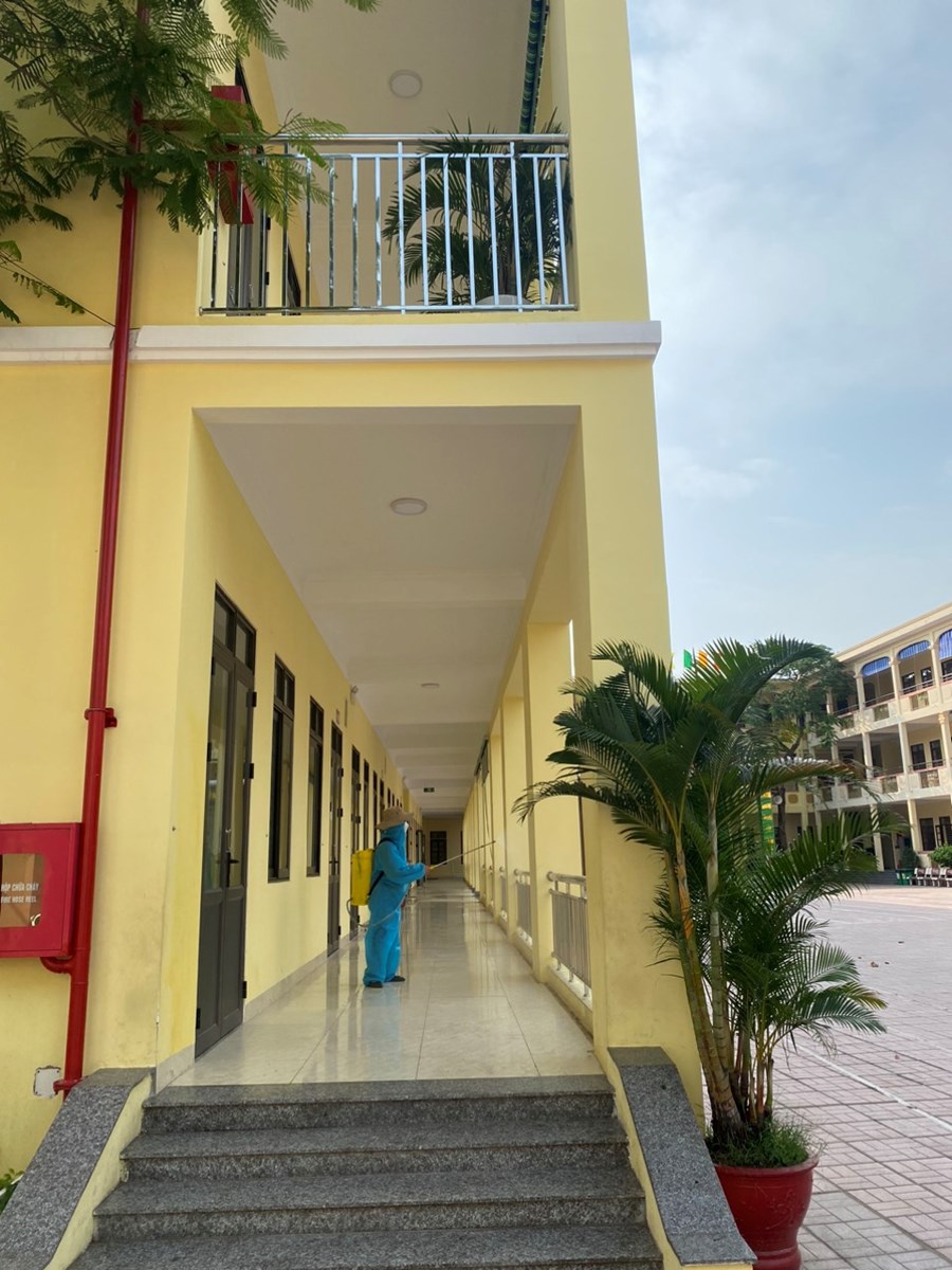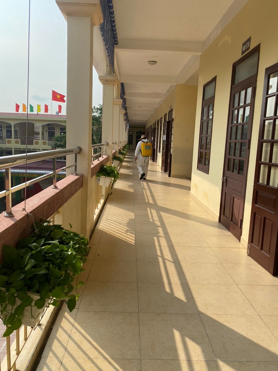 Thực hiện công văn số 2439/UBND-YT về việc tiếp tục tăng cường công tác phòng chống dịch bệnh đau mắt đỏ trên địa bàn, sáng ngày 07/10/2023 nhà trường đã tiến hành phun khử khuẩn toàn bộ trường học gồm: Các phòng học, bếp ăn, cầu thang, các phòng chức năng và khuôn viên nhà trường.