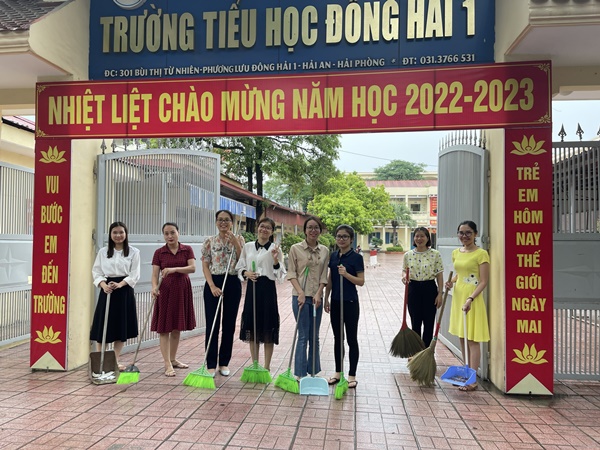 Hưởng ứng “Ngày Chủ nhật xanh” do Quận đoàn phát động nhằm tuyên truyền nâng cao nhận thức về công tác bảo vệ môi trường trong cán bộ, giáo viên nhà trường. Sáng thứ bảy ngày 24/9/2022, Giáo viên Trường tiểu học Đông Hải 1 với tinh thần xung kích, tình nguyện, nhiệt tình trong công tác bảo vệ môi trường, trong khoảng thời gian từ 8h tới 10h đã dọn vệ sinh sạch sẽ xung quanh trước cổng trường và trong khuôn viên làm việc của trường. Qua đó, đã góp phần làm đẹp mỹ quan khuôn viên trường
