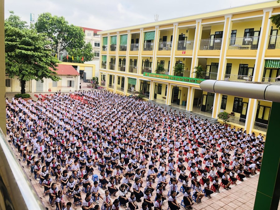 Khi tiếng trống trường báo hiệu giờ Chào cờ, toàn trường đã chuẩn bị sẵn sàng trong trang phục thật nghiêm chỉnh, khẩn trương ổn định chỗ ngồi. Mở đầu là phần nghi lễ Chào cờ, bài hát Quốc ca được cất lên bởi các thầy cô và hàng trăm các bạn học sinh thân yêu thật dõng dạc và hào hùng.