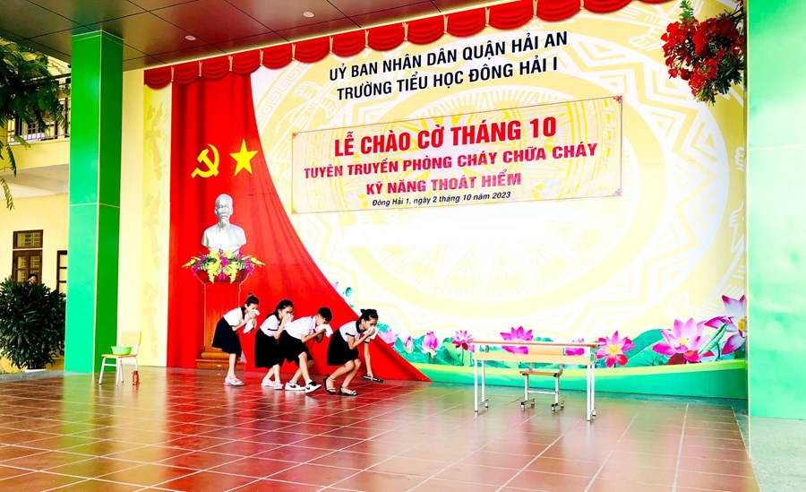 Bên cạnh đó, giờ Chào cờ còn có nhiều điểm mới về nội dung, hình thức tổ chức như phần hoạt động tuyên truyền về Phòng cháy chữa cháy và kỹ năng thoát hiểm thông qua Tiểu phẩm và những trò chơi hỏi đáp rất thú vị, bổ ích với những phần quà xinh xắn.
