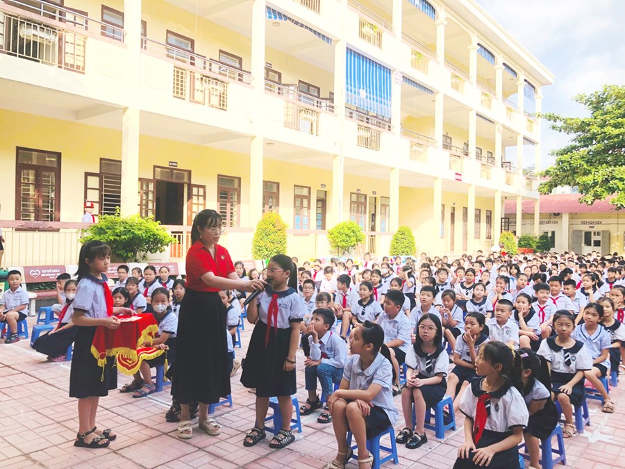 Sau nghi lễ, toàn trường nghe cô Nguyễn Thị Kim Huế - Giáo viên Tổng phụ trách đánh giá các hoạt động của toàn trường, tuyên dương các tập thể, cá nhân tiêu biểu, rút kinh nghiệm những tồn tại ở tháng trước, tổng kết điểm thi đua và triển khai nhiệm vụ tháng tới.