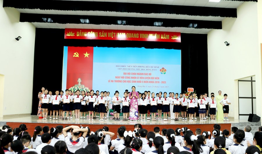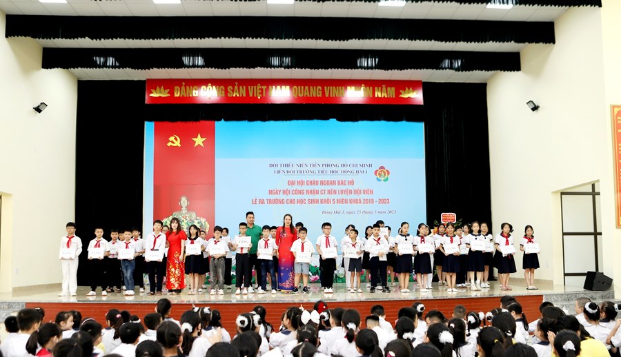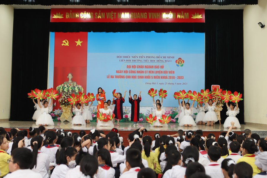 Năm học 2022-203, toàn trường có 446 học sinh lớp 5 được công nhận hoàn thành Chương trình tiểu học. Trong năm học vừa qua, nhiều em học sinh lớp 5 đã đại diện nhà trường tham dự các kỳ thi cấp thành phố, quận do ngành GD&ĐT tổ chức đạt thành tích cao; các phong trào và hoạt động của Đội Thiếu niên tiền phong được các em tham gia tích cực với nhiều thành tích đáng phấn khởi. Thành tích của các em chính là những bông hoa tươi thắm, là động lực tiếp nối để các em học sinh của trường không ngừng phấn đấu đạt được những kết quả cao hơn nữa trong năm học sắp đến. Thay mặt Thầy giáo, cô giáo và toàn thể cán bộ, viên chức nhà trường, Cô Phạm Thị Lý – Bí thư chi bộ - Hiệu trường nhà trường phát biểu chúc các em bước vào lớp 6 năm học 2023 - 2024 đạt được nhiều thành tích trong học tập, chăm ngoan, học giỏi, vâng lời thầy cô, ông bà, cha mẹ và không ngừng tiến xa hơn nữa với những ước mơ và hoài bão của mình.