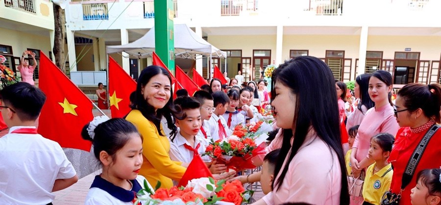 Cô Phạm Thị Lý - Bí thư chi bộ, hiệu trưởng nhà trường đọc diễn văn khai mạc và đánh trống khai trường, âm thanh rộn rã, tưng bừng của tiếng trống trường như giục giã, làm nức lòng thầy và trò, cũng là hiệu lệnh trang nghiêm giúp thầy và trò quyết tâm hơn trong việc thực hiện nhiêm vụ của năm học mới