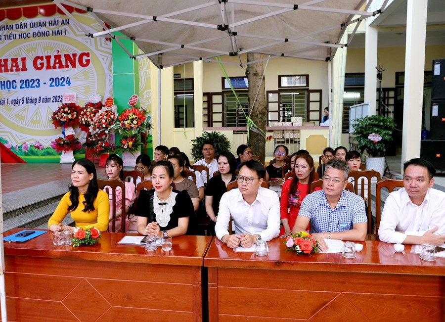 + Ông Đỗ Văn Thuấn - Bí thư Đảng ủy - Chủ tịch hội đồng nhân dân phường Đông Hải 1, cùng các ban ngành đoàn thể, các cơ quan đơn vị đóng trên địa bàn, đại diện Ban đại diện Hội cha mẹ học sinh nhà trường, cùng các thầy cô giáo, cán bộ công nhân viên nhà trường và toàn thể các em học sinh.
