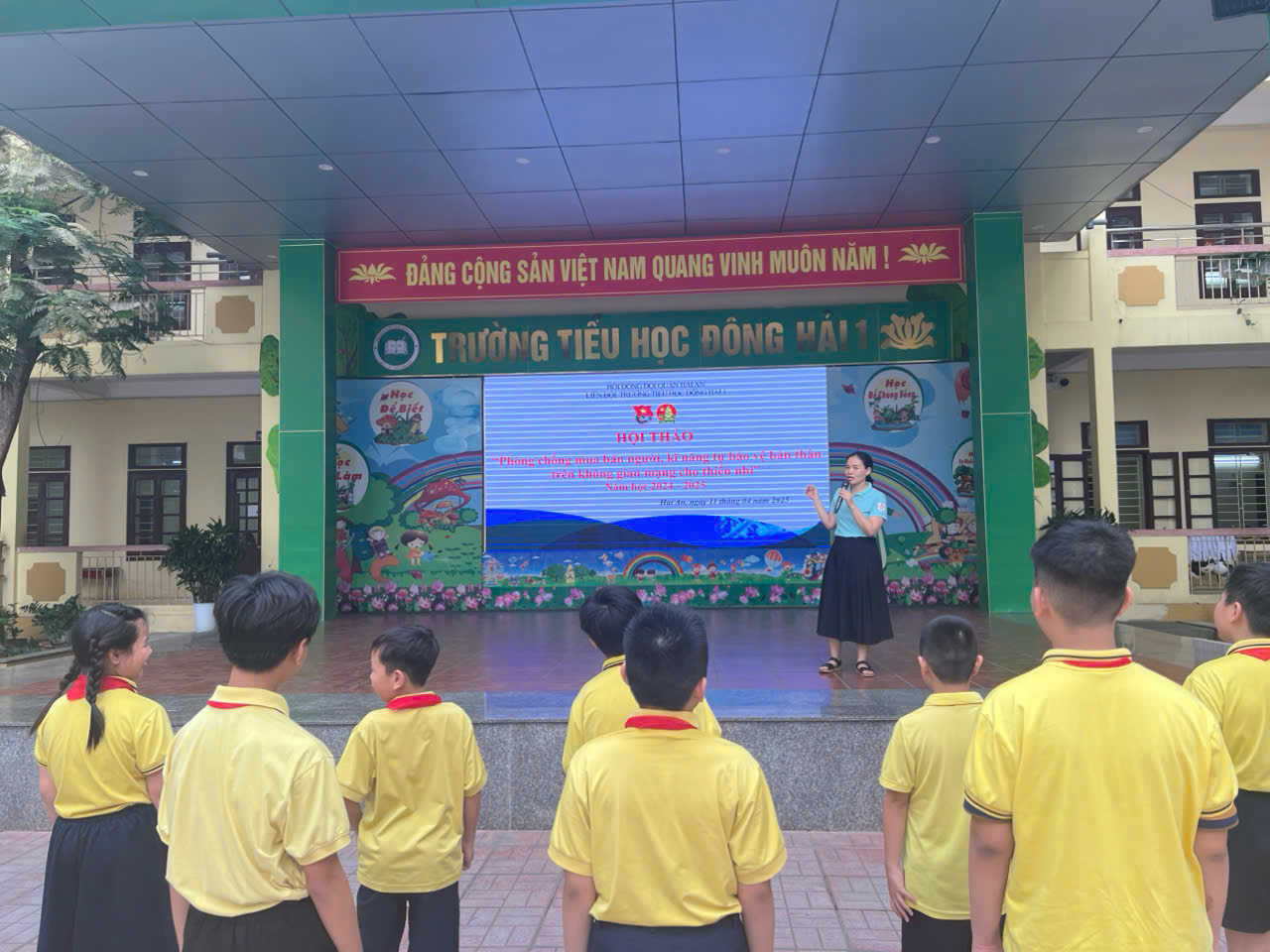 Ngày 11/4/2025, Liên đội TH Đông Hải 1 đã tổ chức tuyên truyền kĩ năng tự bảo vệ bản thân trên không gian mạng và phòng chống mua bán người cho thiếu niên, nhi đồng. Buổi tuyên truyền có ý nghĩa thiết thực và giúp các em học tập thêm các kĩ năng phòng tránh và bảo vệ bản thân trước các nguy cơ của tội phạm lợi dụng trẻ em trên không gian mạng.