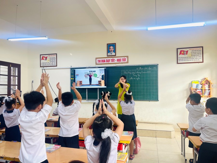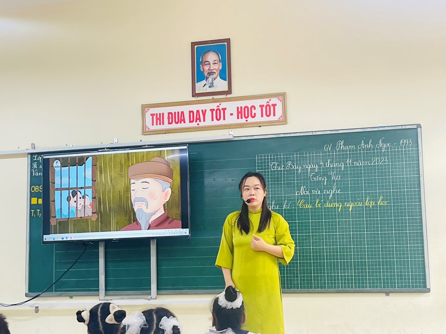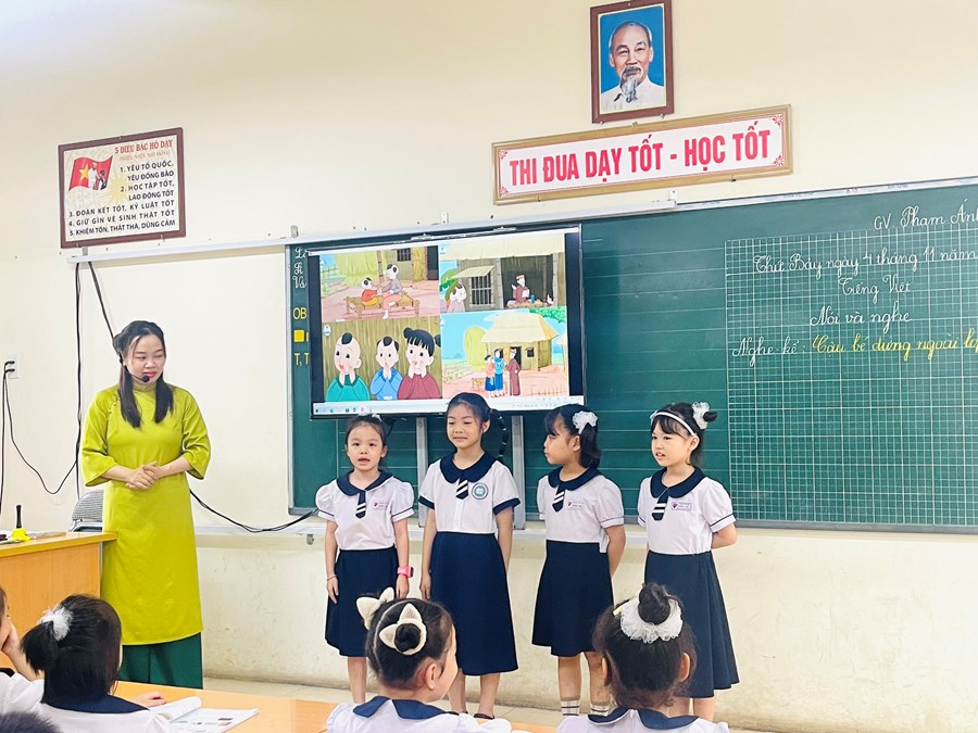 Thực hiện kế hoạch bồi dưỡng chuyên môn, ngày 4/11 tổ chuyên môn khối 2 đã lên lớp chuyên đề cấp trường: Chuyên đề: “Phát triển năng lực ngôn ngữ cho học sinh lớp 2 qua hoạt động nói và nghe môn Tiếng Việt”.Phần lên lớp minh họa do cô giáo Phạm Ánh Ngọc và các em học sinh lớp 2A3 thể hiện. Tiết dạy diễn ra rất sôi nổi và thành công. Sau tiết dạy đồng chí Phó hiệu trưởng Vũ Thị Thu Hà cùng các giáo viên đã thảo luận, phân tích bài học để hoàn thiện chuyên đề.