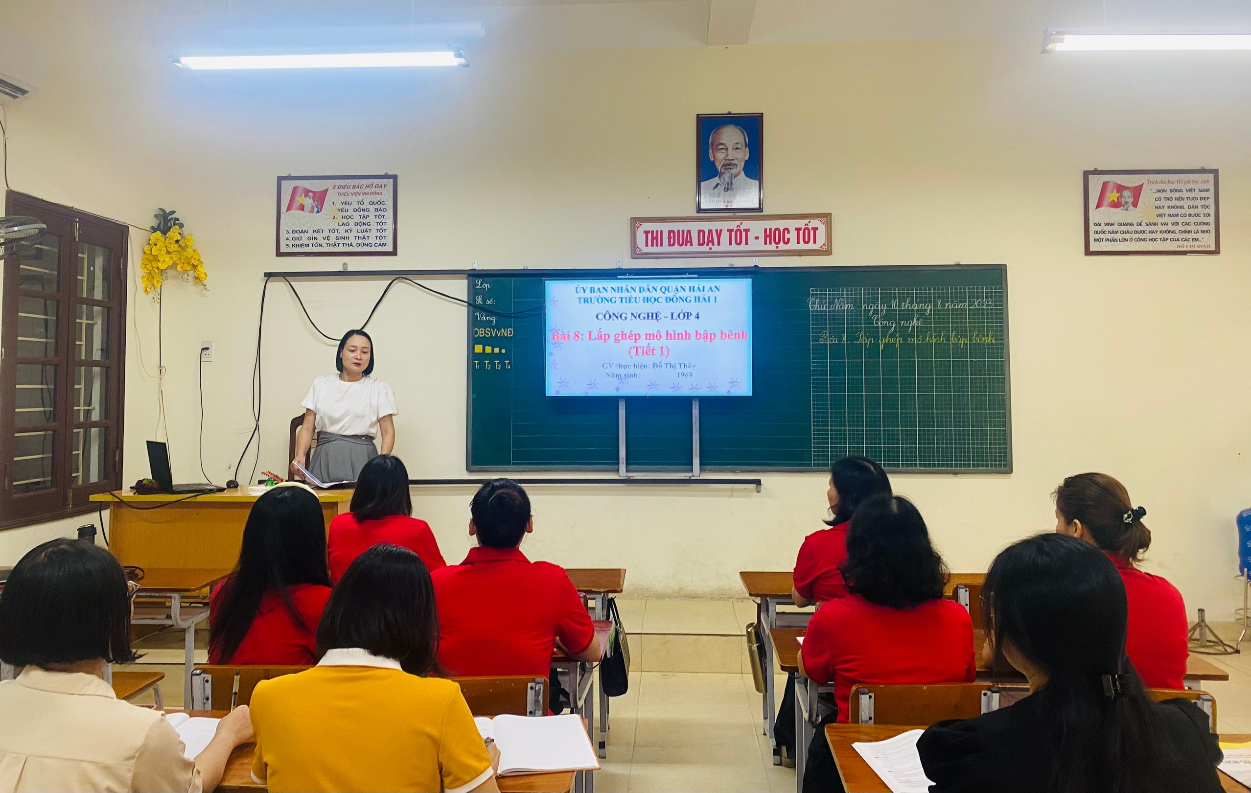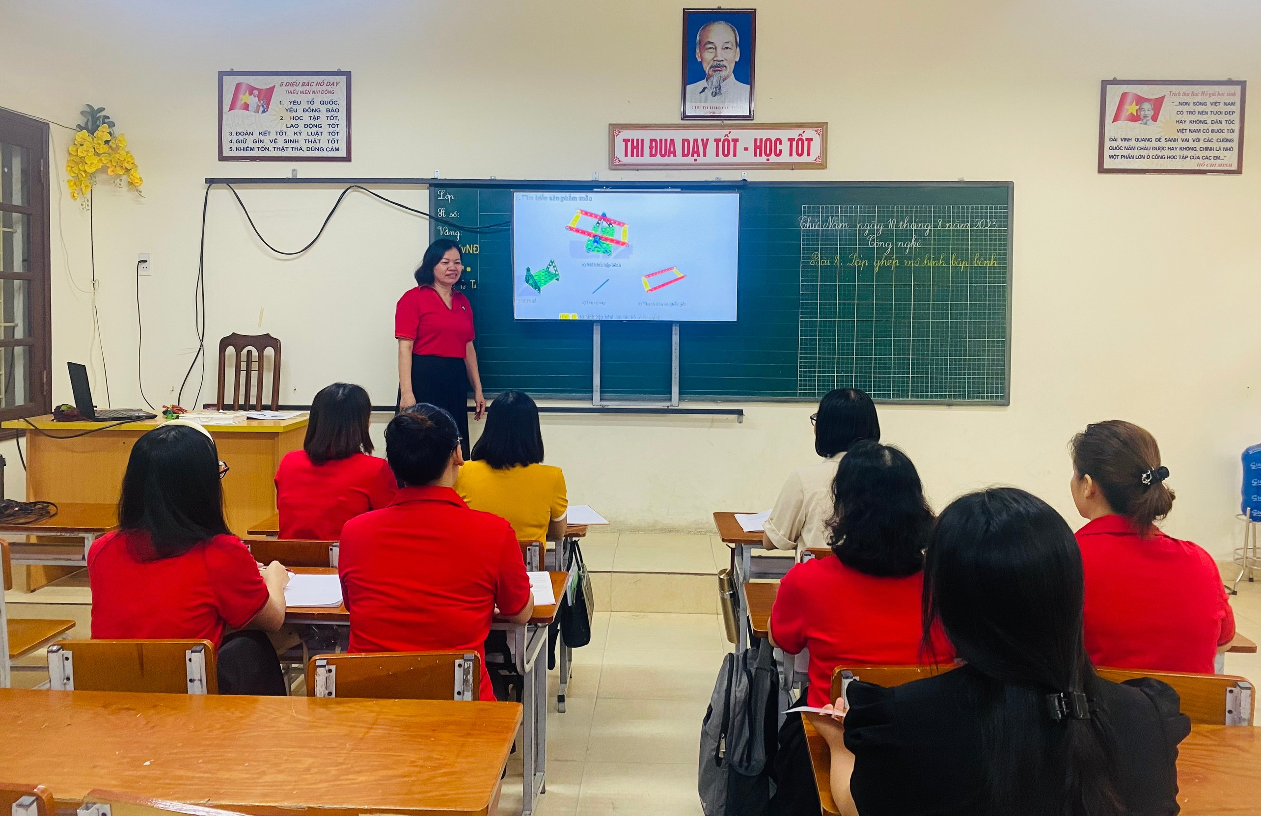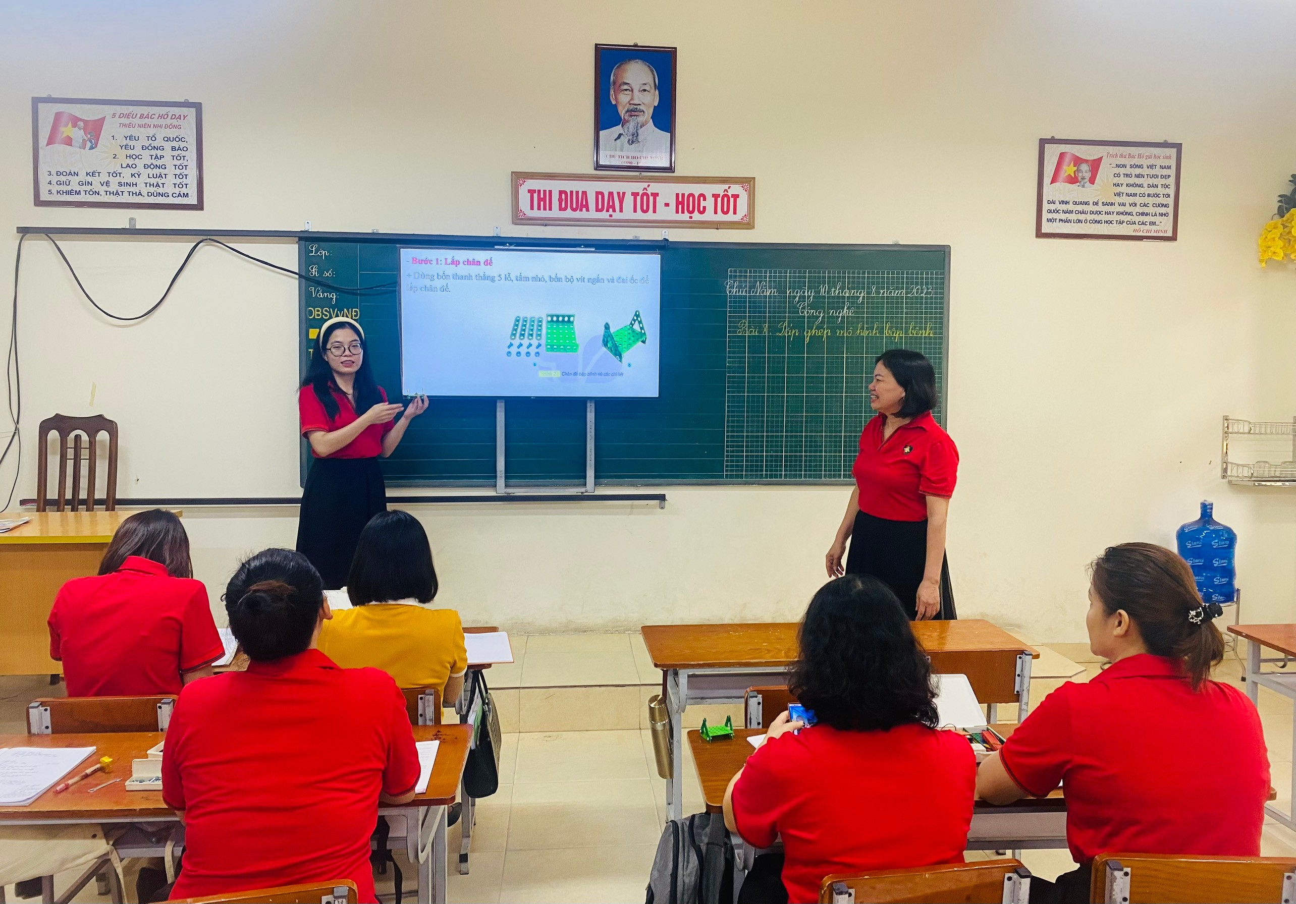 Bên cạnh hình thức tự học, tự bồi dưỡng thì lên lớp dự giờ cũng là một trong những hình thức bồi dưỡng chuyên môn hiệu quả. Tuy lớp học vắng bóng các học trò nhỏ, nhưng được sự hỗ trợ của đồng nghiệp, các tiết học lên lớp đã diễn ra rất sôi nổi và thành công. Sau giờ dạy, tổ chuyên môn đã họp, rút kinh nghiệm tiết dạy, áp dụng tiết học và thực tế sao cho đạt hiệu quả và phát huy được năng lực, phẩm chất cho học sinh.