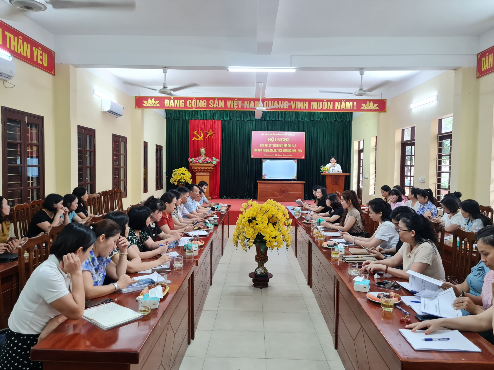 Chiều ngày 13/6/2024, Phòng giáo dục quận Hải An tổ chức Hội nghị bình xét thi đua năm học 2023 - 2024 tại trường tiểu học Đông Hải 1.