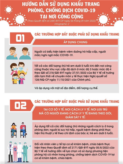 - Áp dụng với tất cả các đối tượng ( trừ những người cách ly ở trong phòng đơn; người bị suy hô hấp, người bệnh đang phải thực hiện thủ thuật y tế theo chỉ định của bác sĩ, trẻ em dưới 5 tuổi ).