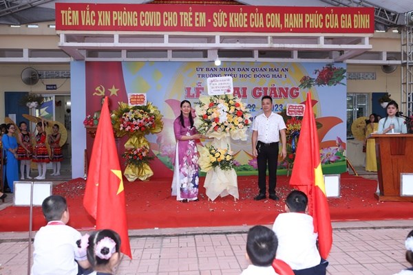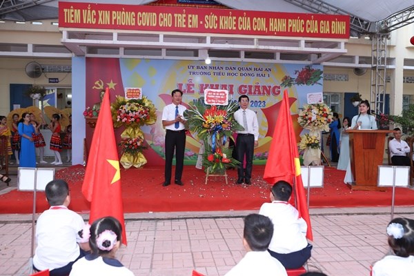 Đến dự và động viên thầy và trò nhà trường có các cô bác lãnh đạo đại diện cho Quận ủy – HĐND-UBND-UBMTTQVN quận Hải An, Đảng ủy- HĐND UBND –UBMTTQVN, Trưởng các đoàn thể phường Đông Hải 1, các bậc phụ huynh học sinh cùng toàn thể cán bộ giáo viên, nhân viên và hơn 1.900 học sinh Trường Tiểu học Đông Hải 1 đã có mặt đông đủ.